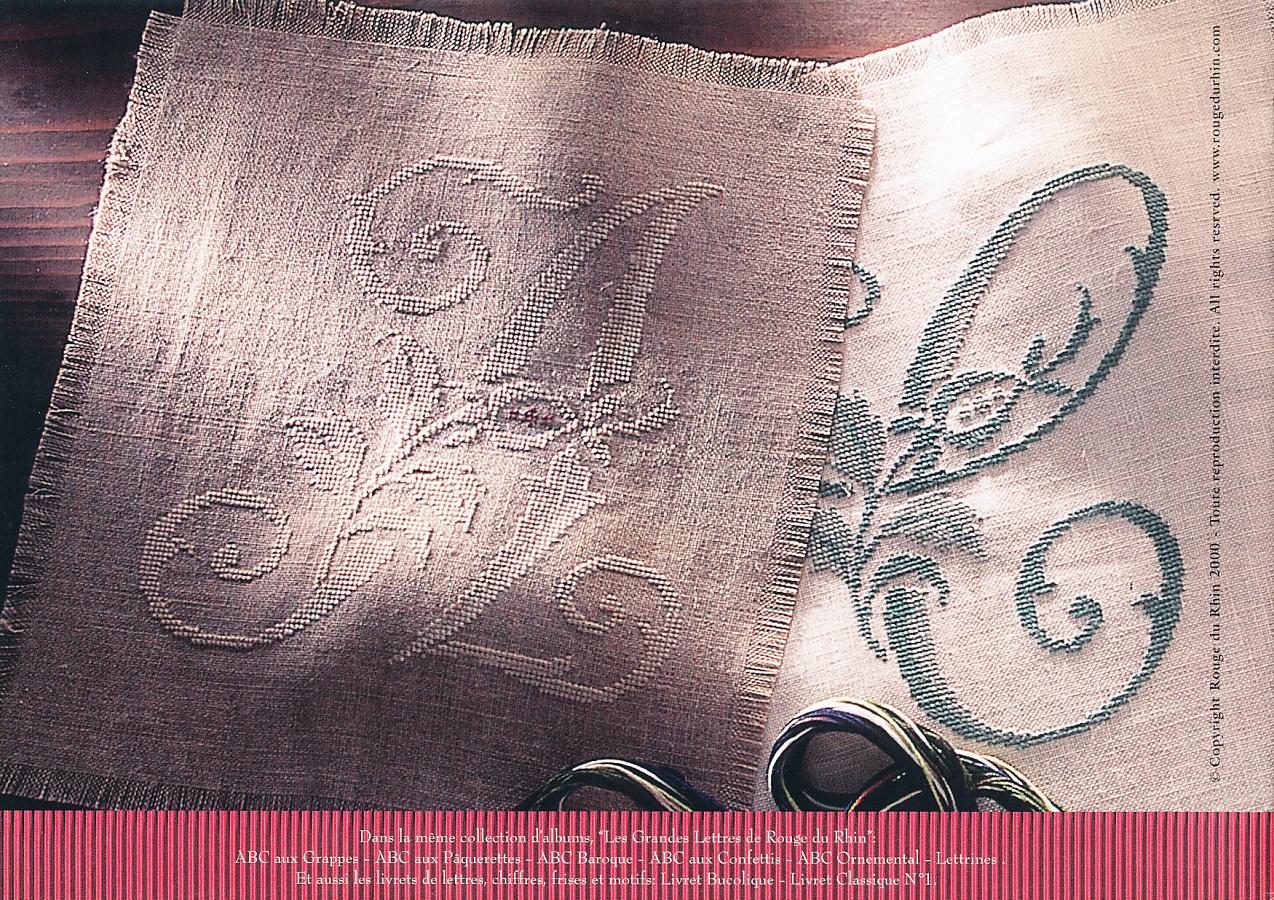 一文字の大きさ、とりわけ、高さが、約100目と約60目の2サイズのアルファベット26文字が納まっています。 表紙・裏表紙のABCについてのみ、参考程度に、刺繍糸の番号が掲載されています。 ページ数:20 出版社名:ROUGE DU RHIN 言語:フランス語 |