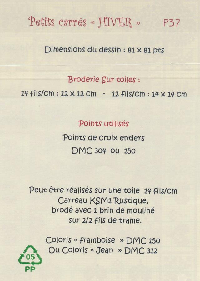 タイトル:冬の正方形 ステッチ数:81 x 81 目 織糸本数1cm=12本の布にステッチした場合、完成サイズは14×14cm 著者名:Marjorie Massey 言語:フランス語 |