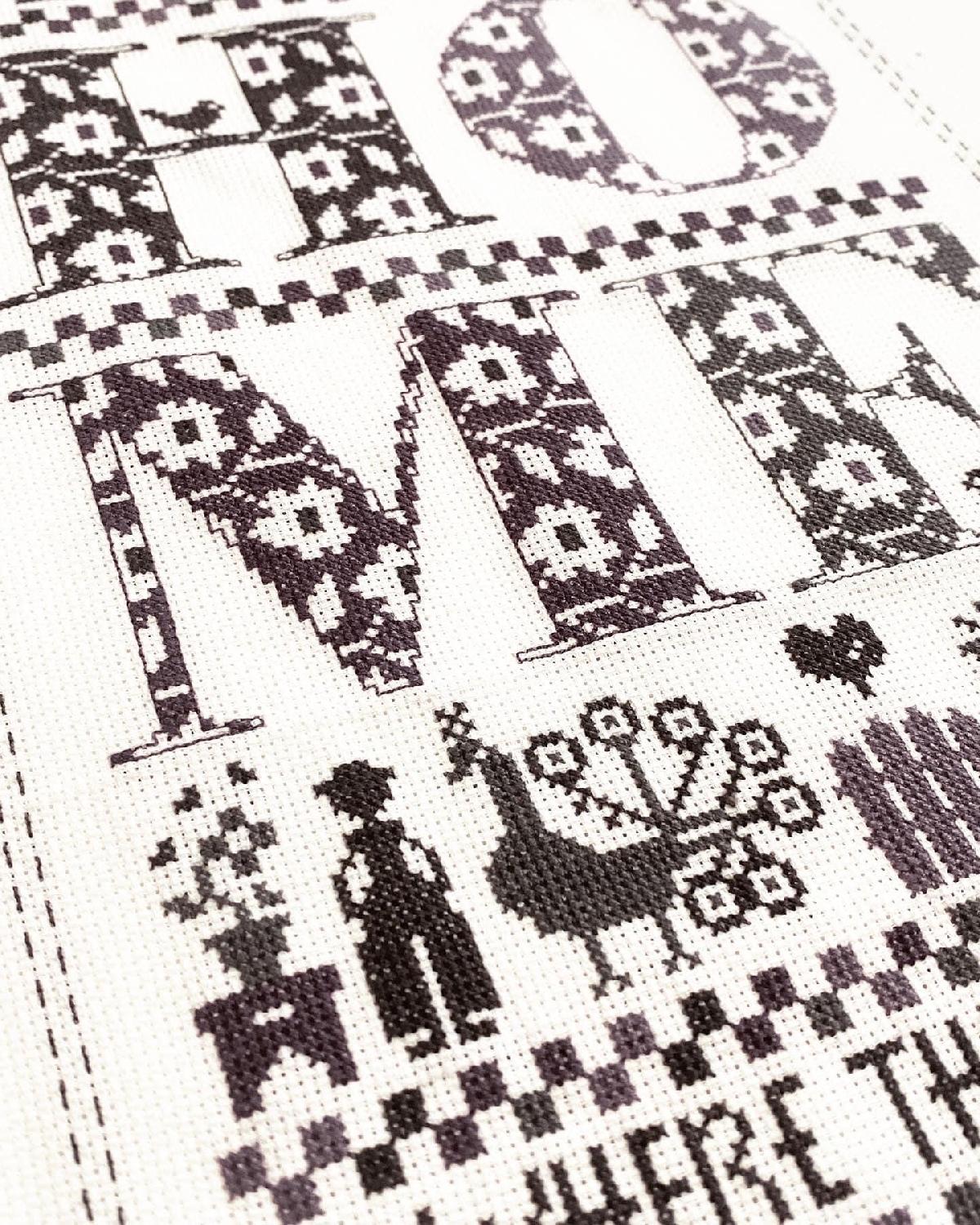 いつも子供の図案ばかりやっていましたが、文字に挑戦。花柄の可愛らしい文字でHOME。