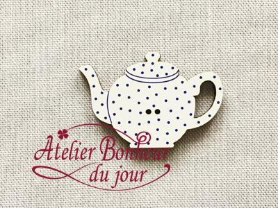 木製ボタン CUISINE - THEIERE A POIS - bleu