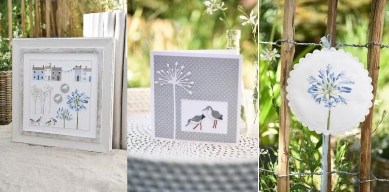 お家とアガパンサス、鳥のサンプラーが可愛いです。