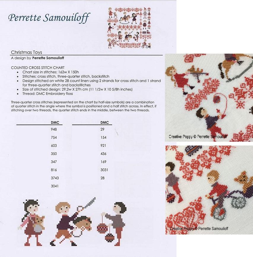 タイトル:クリスマスのおもちゃたち ステッチ数:155 x 147 目 クリスマスプレゼントを受け取った子どもたちの喜びを表現した作品。 お人形や、人形のお家、小さな汽車といったプレゼントの周囲に、 ボーダー模様や、おもちゃで遊ぶ子どもたちの様子が描かれています。 出版社名:Creative Poppy 著者名:PERRETTE SAMOUILOF 言語:英語 |