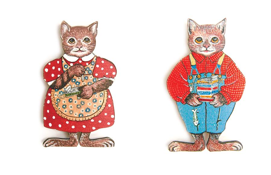 Guy Untereiner 木製マグネット2点セット - ねこ