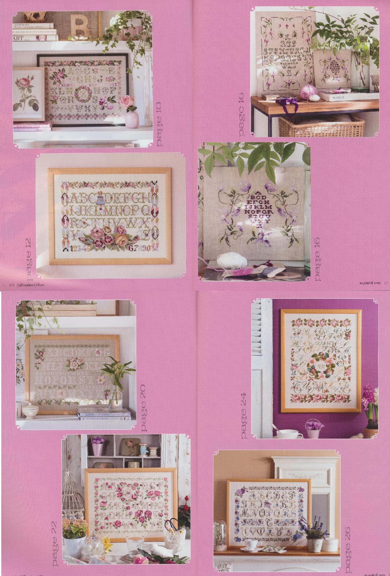 紙の質が厚めで、図案も2ページ以上に渡り、掲載されていて、見やすいです。表紙の右上のパンジーや表紙丸枠の紫色の図案の目数が少ないものをまず刺そうかと思います。