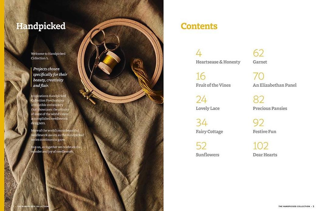 版元サイト[外部リンク] で内容ページをご覧いただけます。 表紙画像をクリックください。 日本人刺繍作家の鈴木史恵さん1点、Christine P. Bishopさん1点を含む、「Handpicked」プロジェクトの作品10点を掲載 Lovely Lace 鈴木史恵さんのハーダンガー刺繍を施した白リネンのポーチ Garnet Christine P. Bishopさんのカウントステッチのテーブルマットとビスコーヌ型シザーフォブ。ブラックワーク模様が特徴。 Honesty & Heartsease Jane Nicholasさんの誠実さと心の安らぎを表現した植物学的なスタンプワーク作品 Precious Pansies Joanna Jakuszewskaさんのリシュリュー刺繍で作るパンジーのリースをあしらった小さなクッションとテーブルマット An Elizabethan Panel Susan Cassonさんの果物や花をモチーフに、立体的な刺繍技法を使ったエリザベス朝風のスタンプワークパネル 出版日:2025/09/25 出版社名:Inspirations Studios Corporation Pty Ltd |