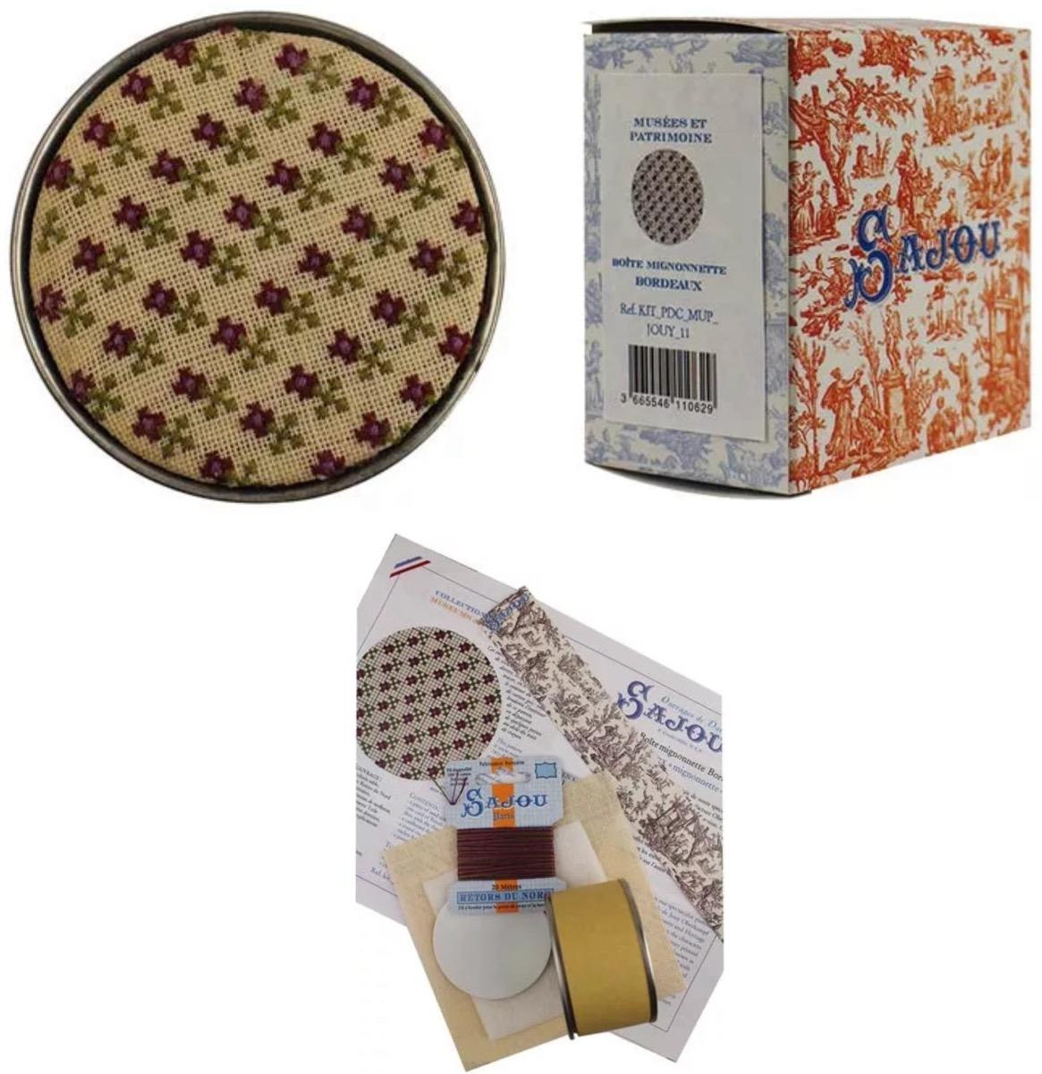 (ミュージアム&ヘリテージ コレクション) お客様からのリクエストにより取り扱いとなりました♪ 〈作品画像など〉 版元サイト[外部リンク] でその他イメージ画像をご覧いただけます。 キットに含まれているもの: − 1cmあたり12本のリネン布(サンドカラー)1枚 − 刺繍に必要なRetors du Nord 刺繍糸(3色) − 厚紙ディスクとキルト綿 − 丸型ボックス: 高さ4cm、直径7.3cmと、グレー系のトワル・ド・ジュイ柄ラベル − 図案チャート これらすべてが、サジューの小さな専用ボックスに入っています。 初心者の方でもチャレンジいただける楽しいキットです。 出版社名:SAJOU 言語:フランス語 |