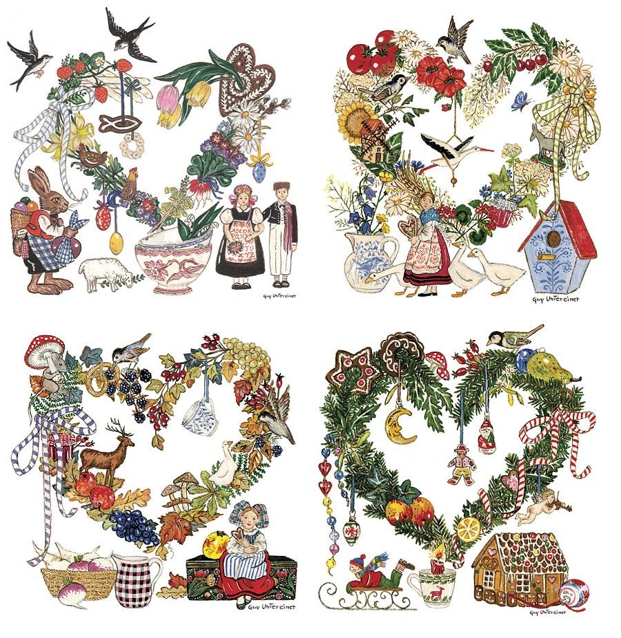 Guy Untereiner ポストカード4枚 - 四季のハート