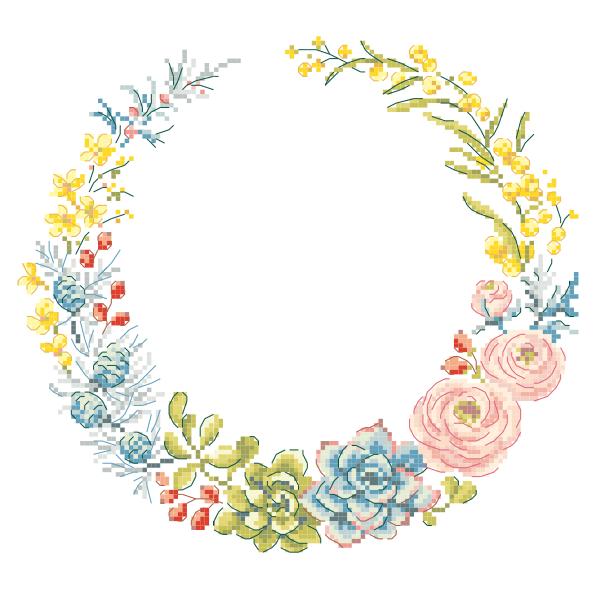 黄色、ピンク、青、グリーン、、、 色鮮やかなリースが美しい図案です☆ サイズ:縦126ポイント×横116ポイント リネン11本またはアイーダ5.5ポイントで刺繍する場合、縦約22.5 cm × 横21 cm フランス製 出版社名:Les Brodeuses Parisiennes 言語:フランス語 |