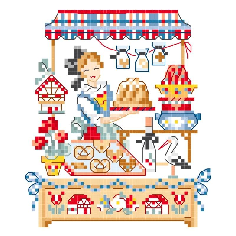 アルザスの民族衣装を着た女性の可愛いショップ。