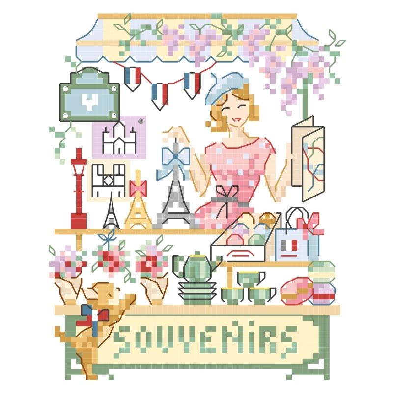 サイズ:縦68ポイント×横55ポイント 11目/cmのリネン(2本取り)、または5.5目/cmのアイーダで刺繍する場合、縦約12 cm × 横9.5 cm 出版社名:Les Brodeuses Parisiennes 言語:フランス語 |