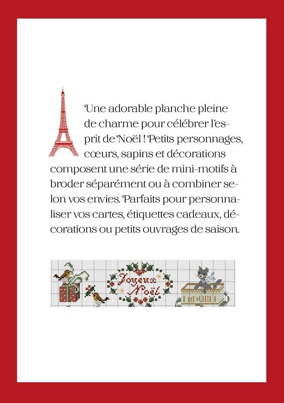 * … * … * … * …* … * … * クリスマス気分を盛り上げる、魅力たっぷりの図案。 ハート、モミの木、オーナメントなどのミニモチーフを、単独で刺しても、他のモチーフと組み合わせても楽しめます。 カード、ギフトタグ、飾り、小物づくりなどにぴったりです。 ∴‥∵‥∴‥∵‥∴‥∴‥∵‥∴‥∵‥∴ 図案サイズ:幅150目 x 高さ190目 出版社名:CESAR EDITION 言語:フランス語 |