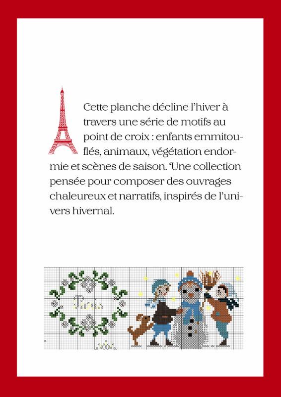 サモイロフさんの想い(和訳): 「この図案は、クロスステッチのさまざまなモチーフを通して冬を表現しています。 厚着をした子どもたち、動物たち、眠りについた植物、そして季節ならではの情景が並びます。 冬の世界観に着想を得た、あたたかみがあり物語性のある作品づくりのために考えられたコレクションです。」 ∴‥∵‥∴‥∵‥∴‥∴‥∵‥∴‥∵‥∴ 図案サイズ:幅150目 x 高さ190目(文字を含む) 出版社名:CESAR EDITION 言語:フランス語 |